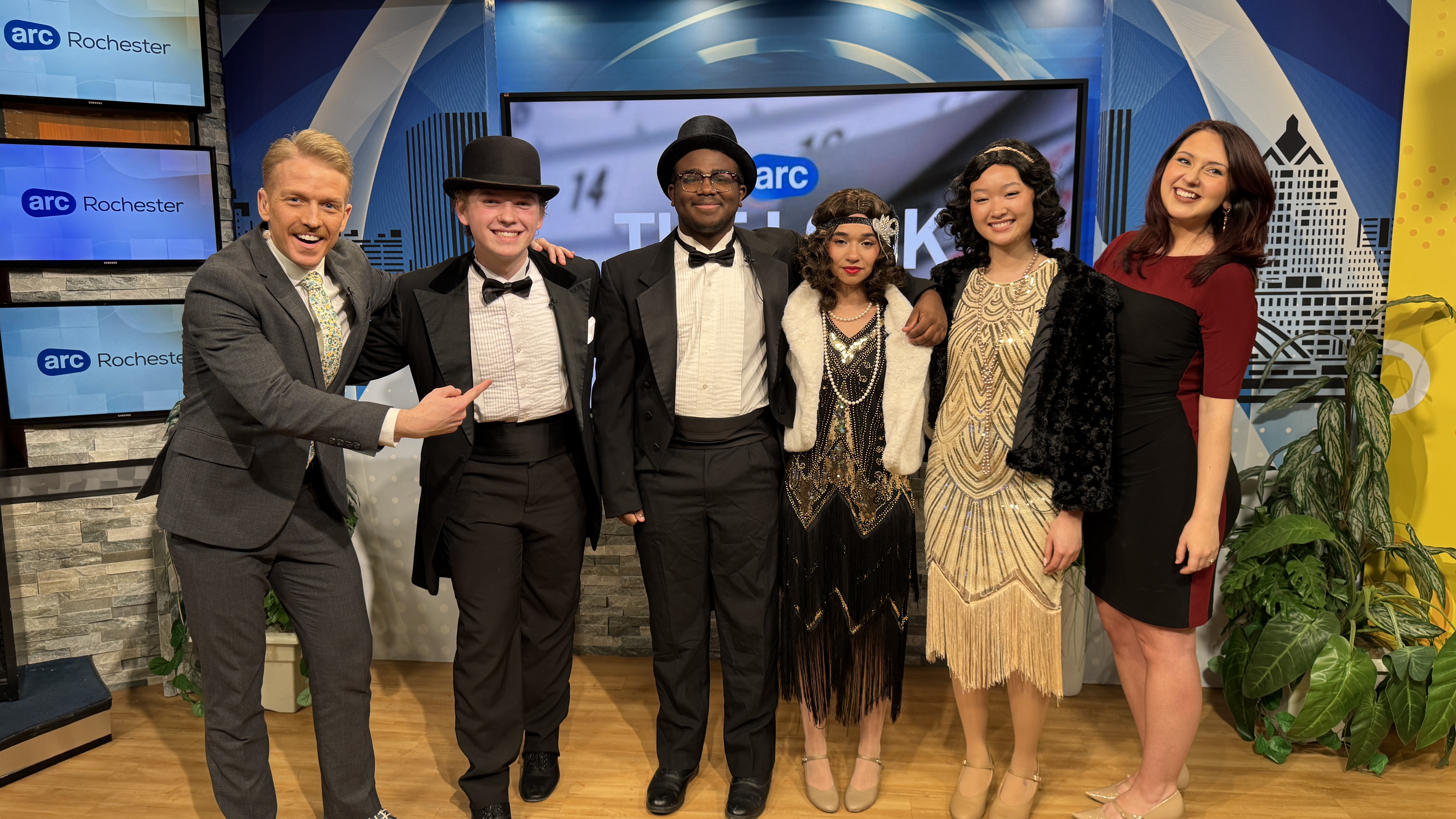 Cast members of Gates Chili Musical Theatre's "Singin' in the Rain" had the opportunity to promote the production on live TV. John C. (Don Lockwood), Liana Q. (Kathy Selden), Amari R. (Lina Lamonte...